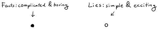 If you want to get attention, only few things beat a blatant lie. In fact, the simpler, cruder and more obvious a lie is, the more people engage emotionally. We just can’t resist our outrage, we find it hard to ignore obvious lies. We pay attention.